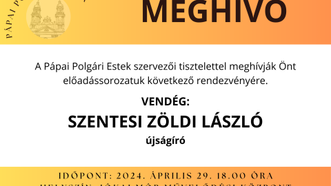 A Pápai Polgári Estek következő vendége: Szentesi Zöldi László újságíró