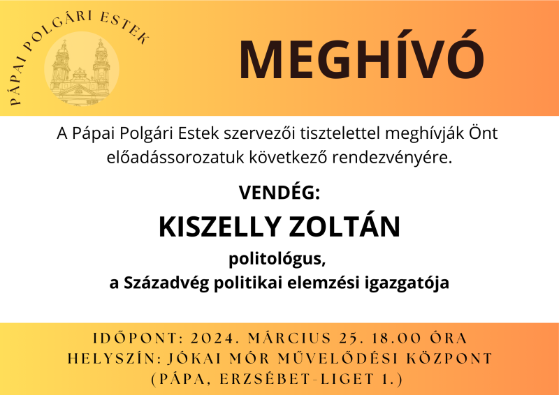 A Pápai Polgári Estek vendége: Kiszelly Zoltán politológus
